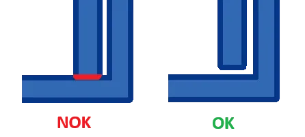 Les arêtes vives peuvent entraîner des contraintes dans le flux des matériaux bruts et provoquer des marques de retrait. De plus, elles peuvent augmenter les coûts de production, car leur fabrication nécessite souvent l’utilisation de l’usinage par électro-érosion (EDM). Nous vous conseillons de concevoir des coins arrondis à la place. Nous recommandons que le rayon interne soit au moins égal à la moitié de l’épaisseur de la paroi, et que le rayon externe soit égal à la somme du rayon interne et de l’épaisseur de la paroi. Il est important de s’assurer que les deux rayons proviennent du même point.