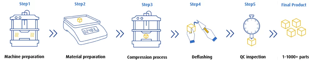 The compression molding process relies on five critical steps that must be carefully followed to ensure consistent product quality. From machine and material preparation to compression, deflashing, and inspection, each stage helps prevent defects and ensures the final parts meet required specifications. Precision in these steps is essential for reliable, high-quality results.
