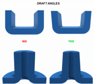 Draft angles are essential for part surfaces to ensure the smooth ejection of the part from the mold. Most CAD systems simplify the addition of draft angles, but it’s best to incorporate them in the final stages of part design to reduce complexity. Keep in mind that not all surfaces need the same degree of draft. Here’s our guidance: