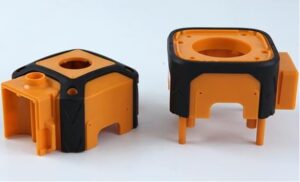 A two-shot molding process, 2K color injection molding allows for complex designs and enhanced functionality. It simultaneously injects two different materials into the mold. Typically, a rigid material like polypropylene is combined with an elastomeric one like TPE. The significant advantage of this technique is that it removes extra steps like painting after molding, making production smoother and maintaining a high-quality finish.
