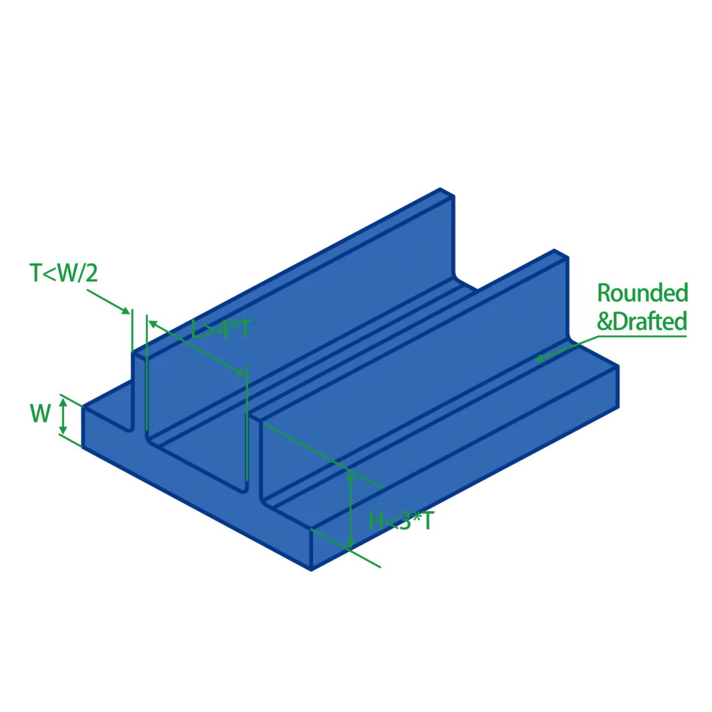 Ribs are vertical elements that enhance structural strength and increase the load-bearing capacity of a design. Here’s our advice for designing ribs effectively: