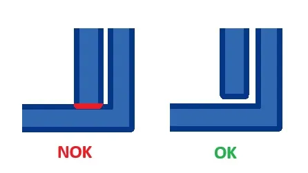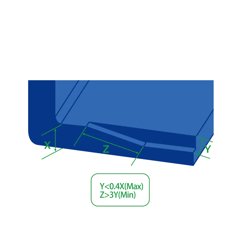 Sharp edges can lead to stress in the flow of raw materials and cause shrinkage marks. Additionally, they can increase production costs as their fabrication often necessitates the use of Electrical Discharge Machining (EDM). We advise you to design some rounded corners instead. We recommend that the internal radius be no less than half of the wall’s thickness, and the external radius should equal the sum of the internal radius and the wall thickness. It is important to ensure that both radii originate from the same point.