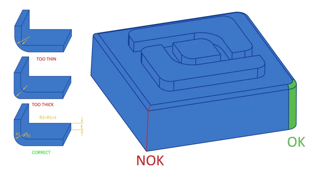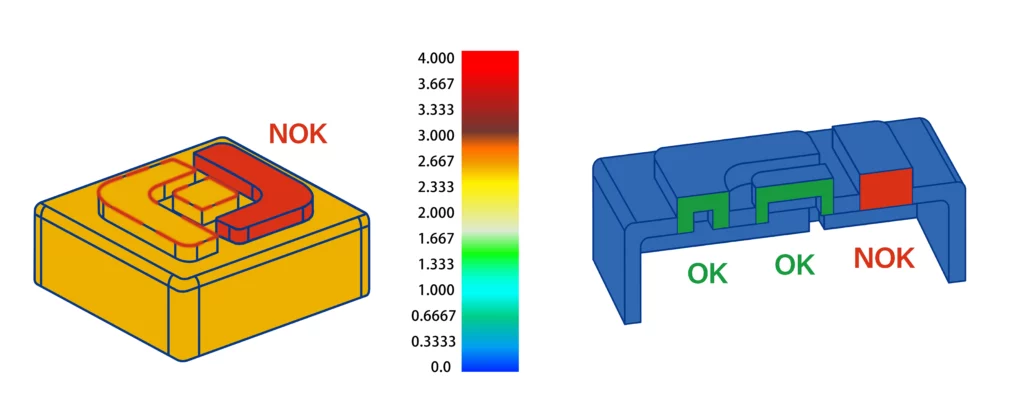 Place parting lines thoughtfully to minimize their visibility, particularly in flash molds. Consider the impact of witness lines and flashes on the part’s appearance, even if it is not a cosmetic part.