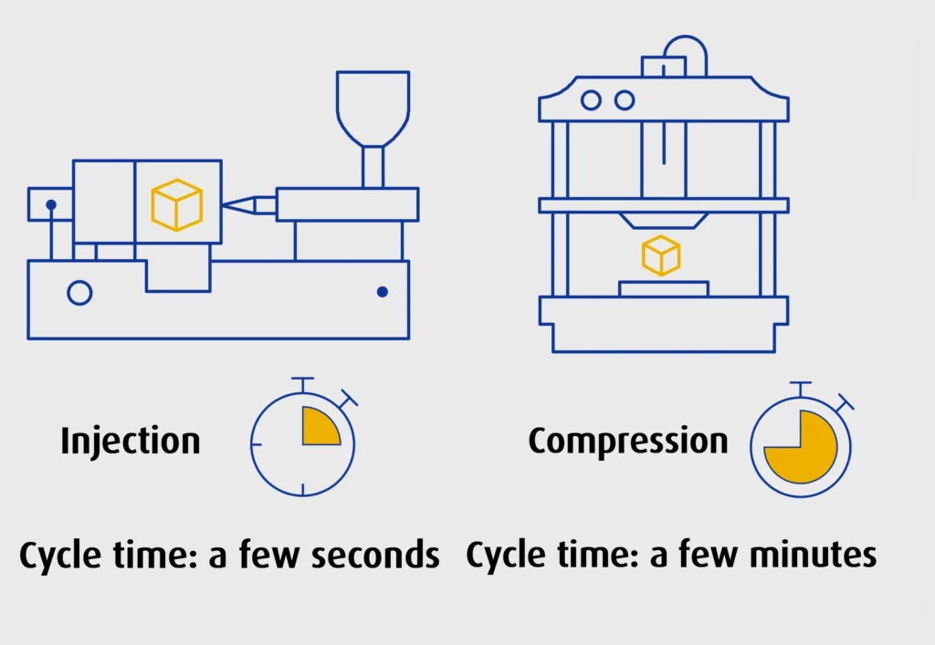 Tooling for compression molding is relatively straightforward, but it is not particularly fast to iterate. Changes to the mold or setup can result in downtime, which is undesirable if projects require quick turnarounds or frequent design updates.