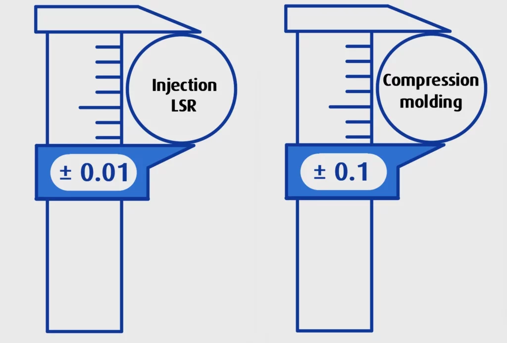 Solution: In most cases, transfer molding or LSR injection molding is better suited for applications where part-to-part consistency and tight tolerances are critical. For more details on rubber compression part tolerances, refer to this section: